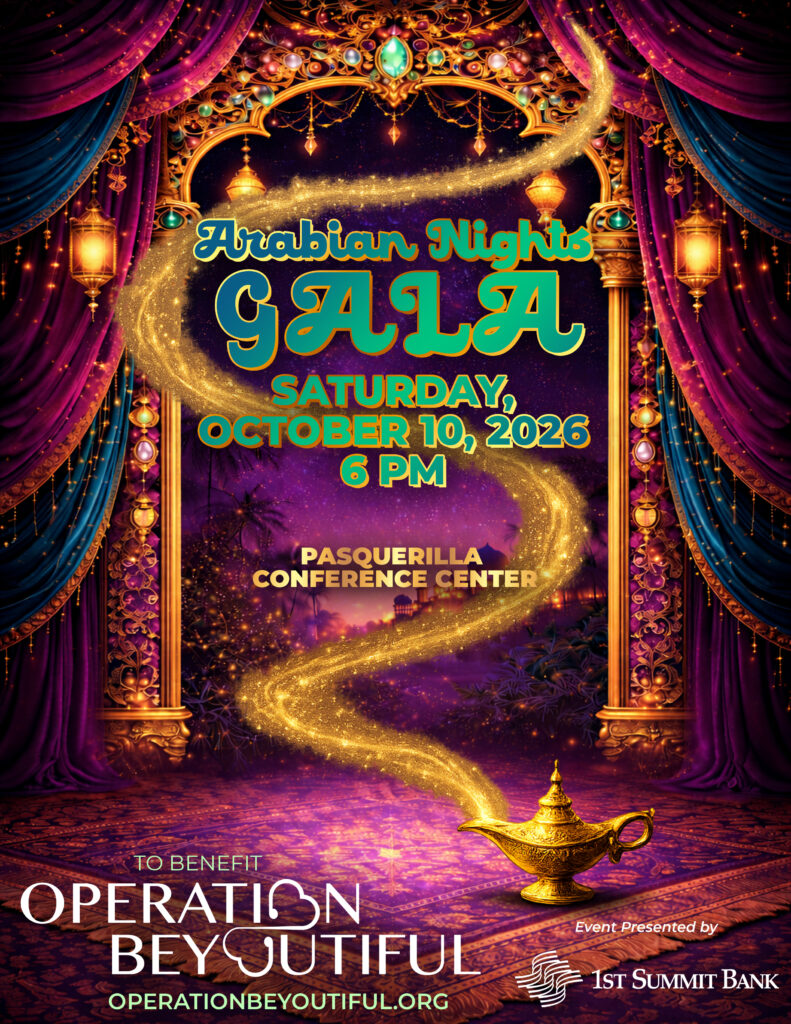 Prepare to step into a world of shimmering lanterns, rich jewel tones, and enchanting surprises at Operation BeYoutiful’s Arabian Nights Gala! Join us on Saturday, October 10th at the beautiful Pasquerilla Conference Center for an unforgettable night inspired by the mystique and elegance of the legendary tales of the Middle East.