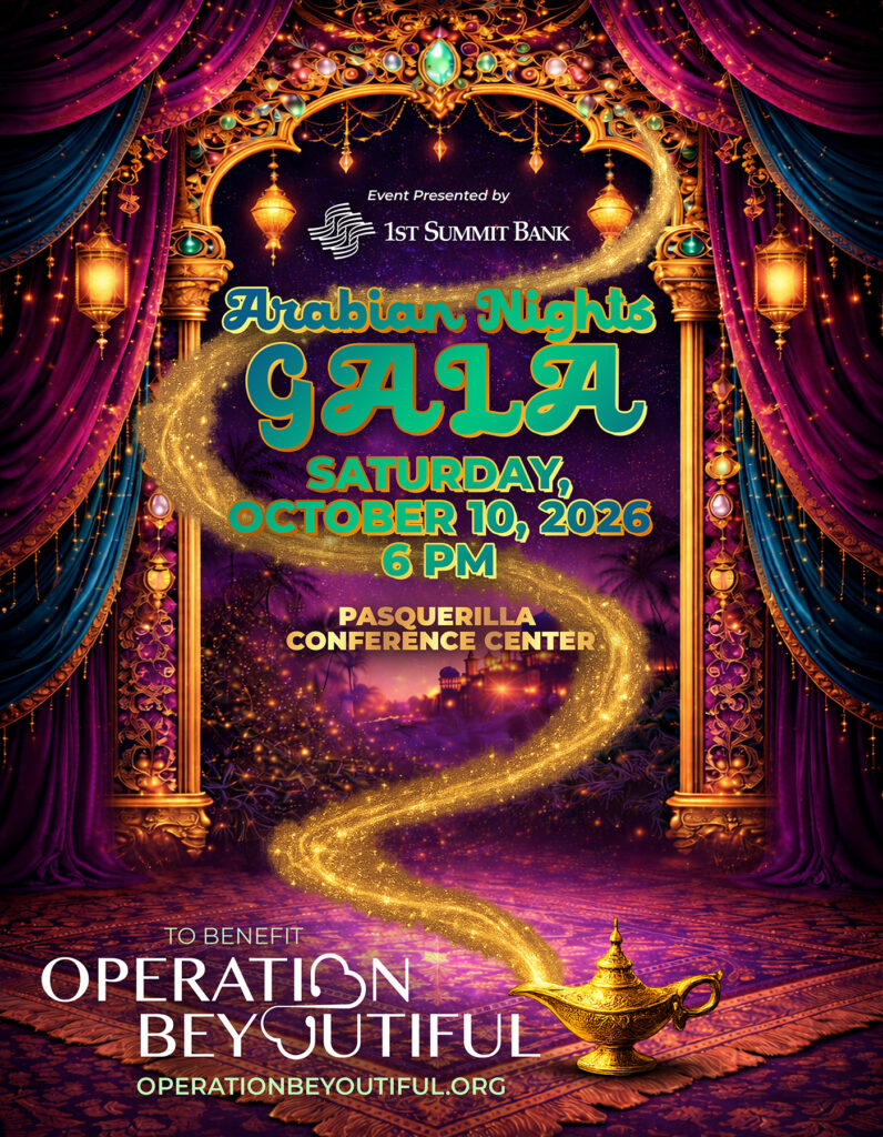 Prepare to step into a world of shimmering lanterns, rich jewel tones, and enchanting surprises at Operation BeYoutiful’s Arabian Nights Gala! Join us on Saturday, October 10th at the beautiful Pasquerilla Conference Center for an unforgettable night inspired by the mystique and elegance of the legendary tales of the Middle East.